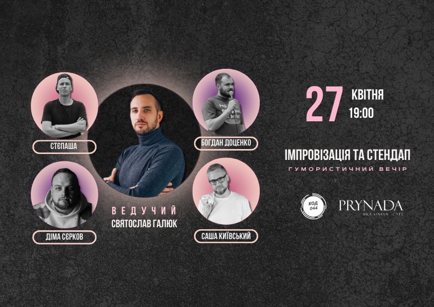 Це вже стає гарною традицією! 27 квітня, із великим задоволенням, знову збираємось з хлопцями із комедійного клубу Сode 044 Сlub аби провести вечір імпровізації і STAND UP. В програмі, як завжди, класний гумор та ваші посмішки.