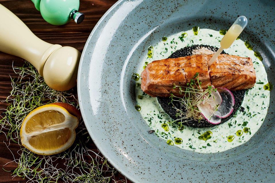 Ніжний лосось з кус-кусом та вершково-шпинатним соусом – це те, що повинен спробувати кожен в Prynada Ukrainian Cafe.