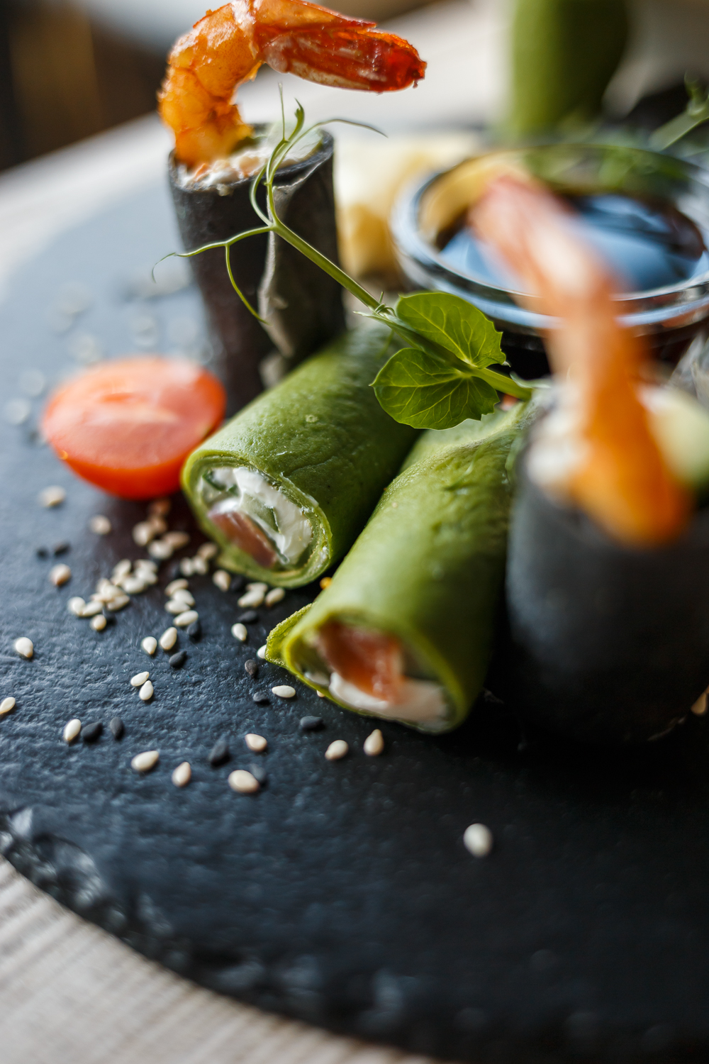 - Шпинатні і Black роли з лососем і крем-сиром