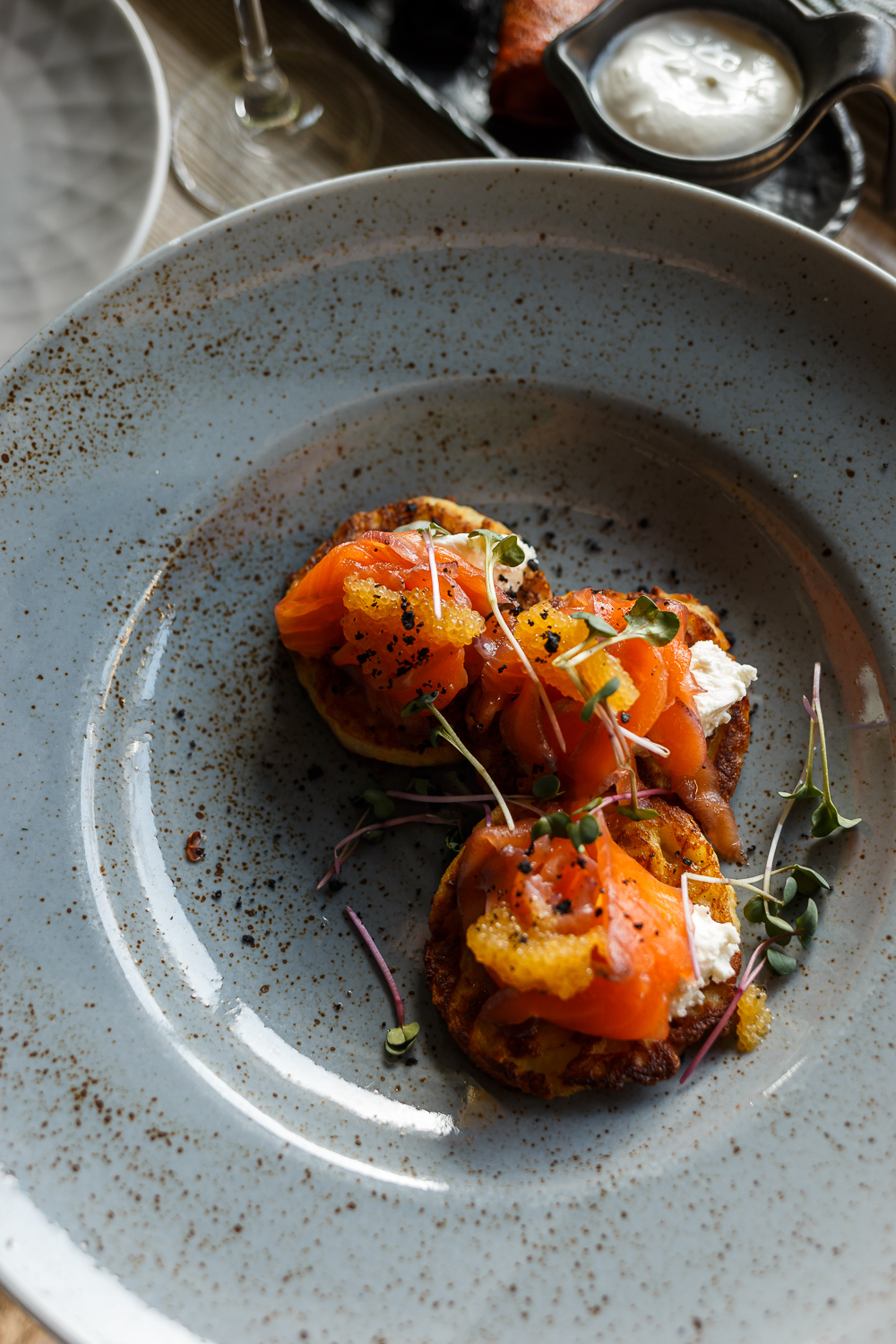 - Деруни з лососем, крем-сиром і кав’яром зі щуки